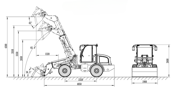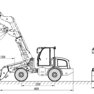 Wysuwane hydraulicznie ramię teleskopowe umożliwia podnoszenie ładunków na wysokość do 4,3 metra i wysyp materiału na poziomie 3,8 metra. Dzięki funkcji szybkiego montażu osprzętu, wymiana narzędzi (łyżka, widły, pług, zamiatarka) zajmuje zaledwie chwilę.